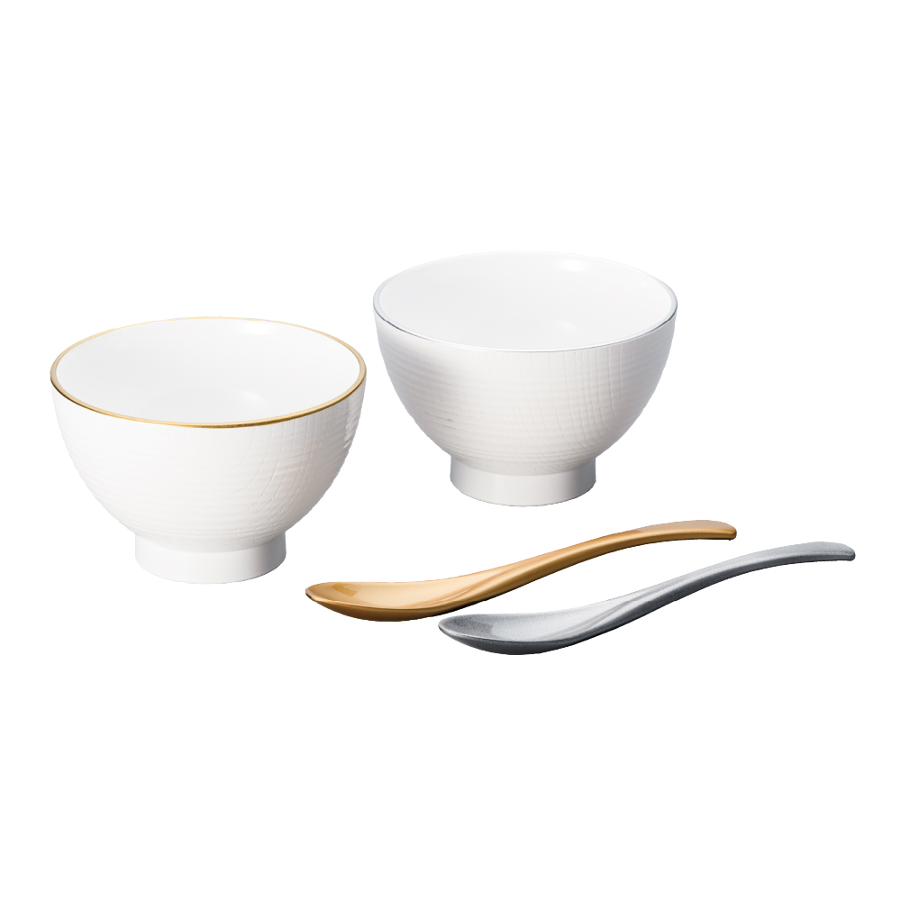 渕金銀ペア木目汁椀(金銀かゆスプーン付)